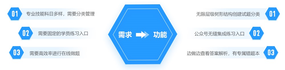 基于长庚职业培训学校对课后练习的需求,考试云提供了集成练习入口至微信公众号的课后练习方案。