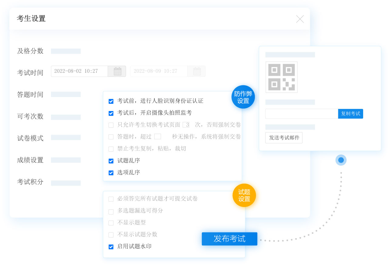 设定应聘者答题要求,填写信息进入考试。